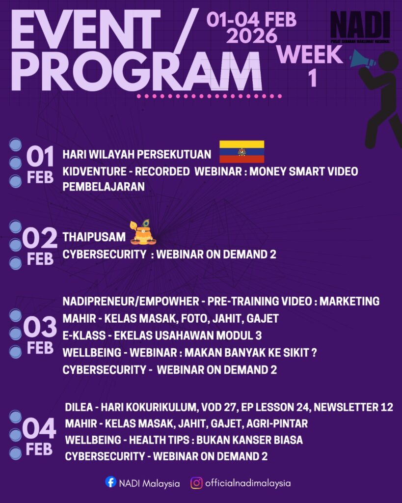 Program Perkhidmatan Pintar NADI memang sesuai untuk anda yang sentiasa nak βupgradeβ diri, ini jadual paling berbaloi β pilih ikut minat, terus join. ![]()